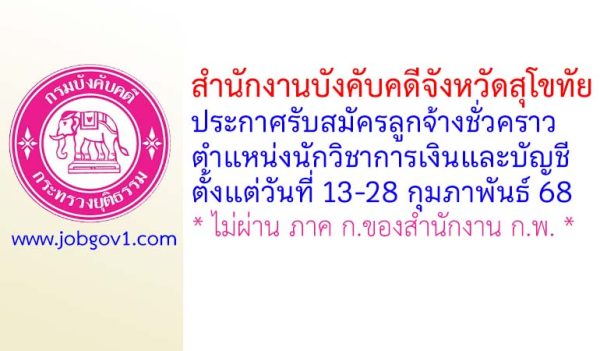 สำนักงานบังคับคดีจังหวัดสุโขทัย สาขาสวรรคโลก รับสมัครลูกจ้างชั่วคราว ตำแหน่งนักจัดการงานทั่วไป ตั้งแต่วันที่ 4-12 ธันวาคม 2568