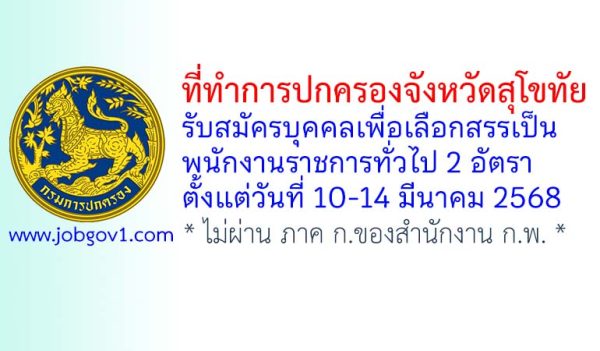 สำนักงานโยธาธิการและผังเมืองจังหวัดสุโขทัย รับสมัครพนักงานราชการทั่วไป ตำแหน่งพนักงานบริหารงานทั่วไป