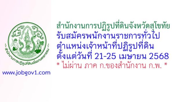 สำนักงานการปฏิรูปที่ดินจังหวัดสุโขทัย รับสมัครพนักงานราชการทั่วไป ตำแหน่งเจ้าพนักงานธุรการ ตั้งแต่วันที่ 27-31 ตุลาคม 2568