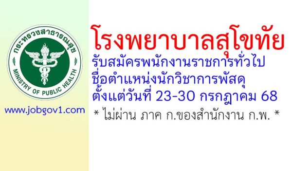 โรงพยาบาลสุโขทัย รับสมัครพนักงานราชการทั่วไป ตำแหน่งนักวิชาการพัสดุ ตั้งแต่วันที่ 23-30 กรกฎาคม 2568