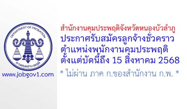 สำนักงานคุมประพฤติจังหวัดหนองบัวลำภู รับสมัครลูกจ้างชั่วคราว ตำแหน่งพนักงานคุมประพฤติ ตั้งแต่บัดนี้ถึง 15 สิงหาคม 2568