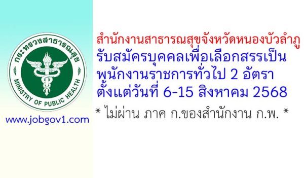 สำนักงานสาธารณสุขจังหวัดหนองบัวลำภู รับสมัครบุคคลเพื่อเลือกสรรเป็นพนักงานราชการทั่วไป 2 อัตรา ตั้งแต่วันที่ 6-15 สิงหาคม 2568