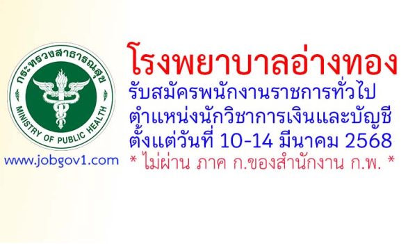โรงพยาบาลอ่างทอง รับสมัครพนักงานราชการทั่วไป ตำแหน่งนักวิชาการเงินและบัญชี ตั้งแต่วันที่ 10-14 มีนาคม 2568