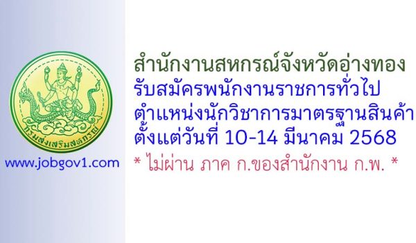สำนักงานสหกรณ์จังหวัดอ่างทอง รับสมัครพนักงานราชการทั่วไป ตำแหน่งนักวิชาการมาตรฐานสินค้า ตั้งแต่วันที่ 10-14 มีนาคม 2568