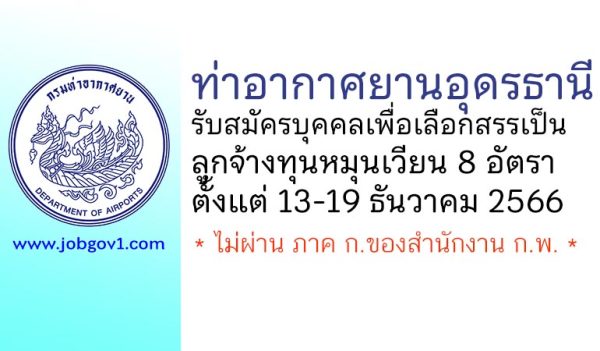 ท่าอากาศยานอุดรธานี รับสมัครบุคคลเพื่อเลือกสรรเป็นลูกจ้างทุนหมุนเวียน 4 อัตรา ตั้งแต่วันที่ 15-19 ธันวาคม 2568