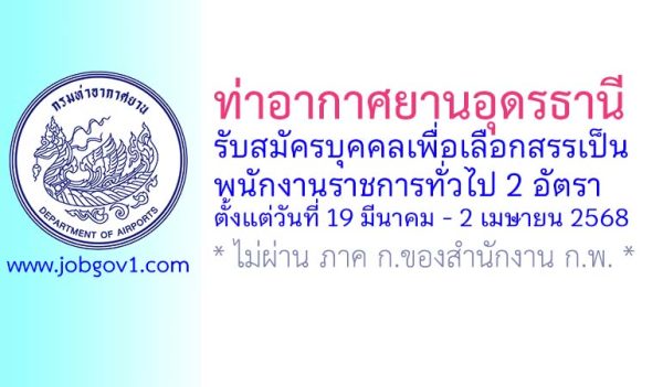 ท่าอากาศยานอุดรธานี รับสมัครบุคคลเพื่อเลือกสรรเป็นลูกจ้างทุนหมุนเวียน 4 อัตรา