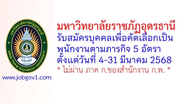 มหาวิทยาลัยราชภัฏอุดรธานี รับสมัครพนักงานตามภารกิจ ตำแหน่งผู้ปฏิบัติงานบริหาร ตั้งแต่วันที่ 1-9 ธันวาคม 2568