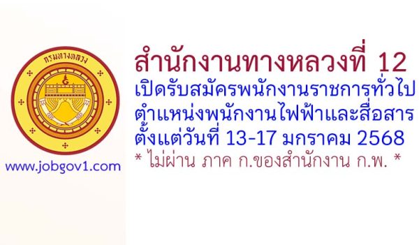 สำนักงานทางหลวงที่ 12 รับสมัครพนักงานราชการทั่วไป ตำแหน่งพนักงานไฟฟ้าและสื่อสาร ตั้งแต่วันที่ 13-17 มกราคม 2568