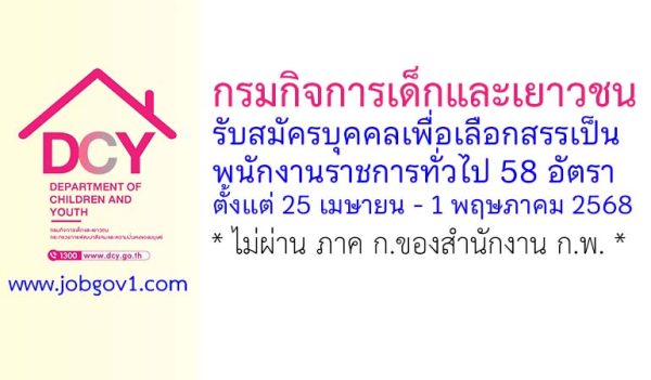 กรมกิจการเด็กและเยาวชน รับสมัครบุคคลเพื่อเลือกสรรเป็นพนักงานราชการทั่วไป 58 อัตรา ตั้งแต่ 25 เมษายน – 1 พฤษภาคม 2568