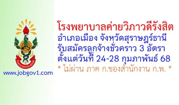 โรงพยาบาลค่ายวชิราวุธ รับสมัครลูกจ้างชั่วคราว 14 ตำแหน่ง 57 อัตรา ตั้งแต่วันที่ 27 ตุลาคม – 7 พฤศจิกายน 2568