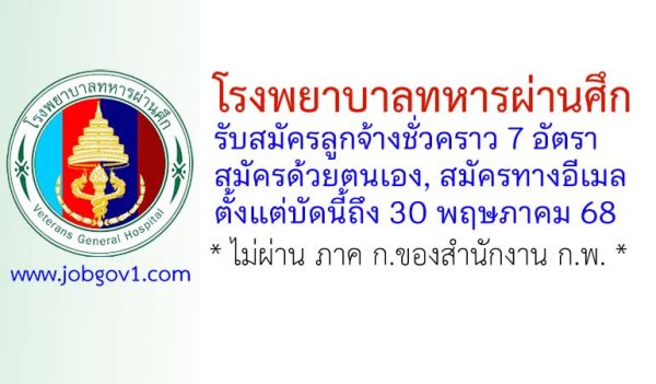 โรงพยาบาลทหารผ่านศึก รับสมัครลูกจ้างชั่วคราว 8 อัตรา ตั้งแต่บัดนี้ถึง 12 พฤศจิกายน 2568