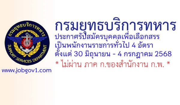 กรมพลาธิการทหารบก รับสมัครพนักงานราชการทั่วไป (เพศชาย/หญิง) 17 อัตรา ตั้งแต่วันที่ 8-12 กันยายน 2568