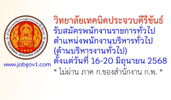 วิทยาลัยเทคนิคโพธาราม รับสมัครพนักงานราชการทั่วไป ตำแหน่งพนักงานบริหารทั่วไป (ด้านบริหารงานทั่วไป) ตั้งแต่วันที่ 17-28 พฤศจิกายน 2568