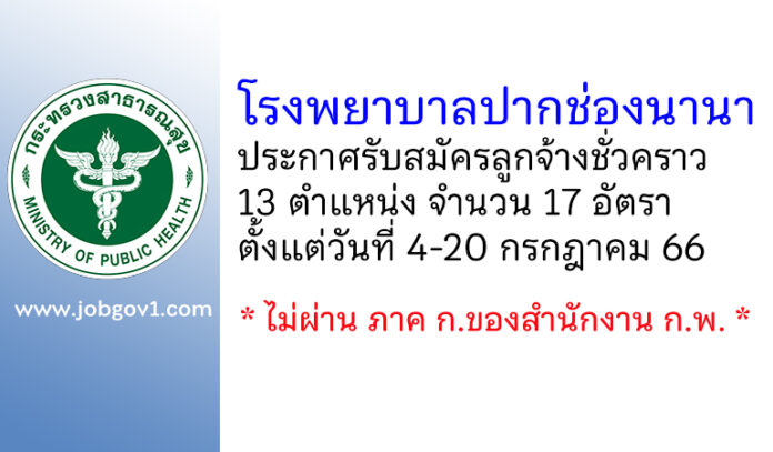โรงพยาบาลปากช่องนานา รับสมัครลูกจ้างชั่วคราว 13 ตำแหน่ง 17 อัตรา ตั้งแต่วันที่ 4-20 กรกฎาคม 2566