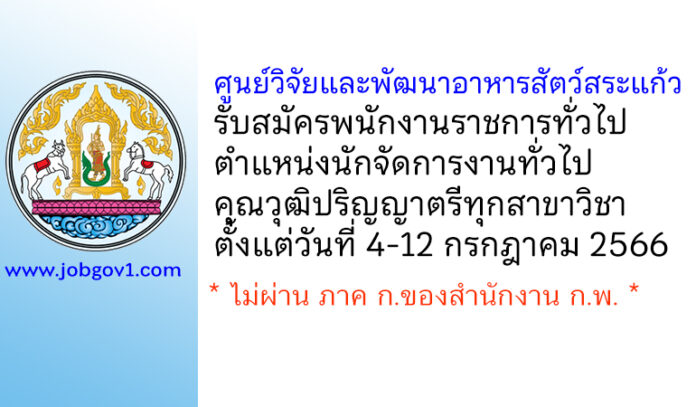 ศูนย์วิจัยและพัฒนาอาหารสัตว์สระแก้ว รับสมัครพนักงานราชการทั่วไป ตำแหน่งนักจัดการงานทั่วไป ตั้งแต่วันที่ 4-12 กรกฎาคม 2566