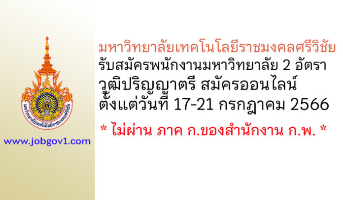 มหาวิทยาลัยเทคโนโลยีราชมงคลศรีวิชัย รับสมัครพนักงานมหาวิทยาลัย 2 อัตรา ตั้งแต่วันที่ 17-21 กรกฎาคม 2566