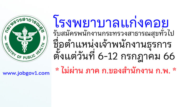 โรงพยาบาลแก่งคอย รับสมัครพนักงานกระทรวงสาธารณสุขทั่วไป ตำแหน่งเจ้าพนักงานธุรการ ตั้งแต่วันที่ 6-12 กรกฎาคม 2566