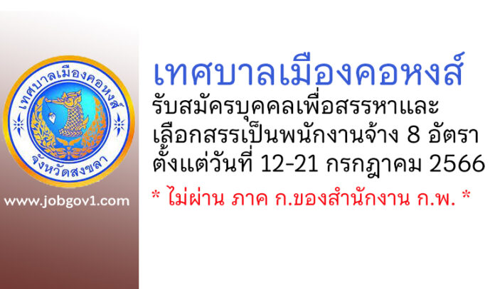 เทศบาลเมืองคอหงส์ รับสมัครบุคคลเพื่อสรรหาและเลือกสรรเป็นพนักงานจ้าง 8 อัตรา ตั้งแต่วันที่ 12-21 กรกฎาคม 2566