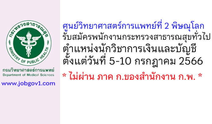 ศูนย์วิทยาศาสตร์การแพทย์ที่ 2 พิษณุโลก รับสมัครพนักงานกระทรวงสาธารณสุขทั่วไป ตำแหน่งนักวิชาการเงินและบัญชี ตั้งแต่วันที่ 5-10 กรกฎาคม 2566