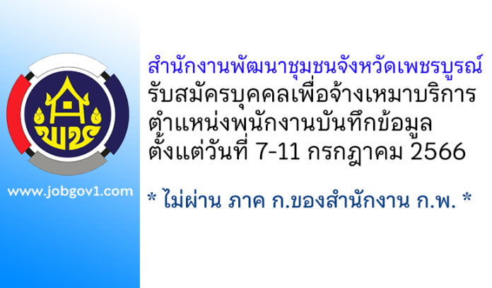 สำนักงานพัฒนาชุมชนจังหวัดเพชรบูรณ์ รับสมัครบุคคลเพื่อจ้างเหมาบริการ ตำแหน่งพนักงานบันทึกข้อมูล ตั้งแต่วันที่ 7-11 กรกฎาคม 2566