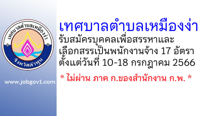 เทศบาลตำบลเหมืองง่า รับสมัครบุคคลเพื่อสรรหาและเลือกสรรเป็นพนักงานจ้าง 17 อัตรา ตั้งแต่วันที่ 10-18 กรกฎาคม 2566