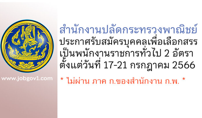 สำนักงานปลัดกระทรวงพาณิชย์ รับสมัครบุคคลเพื่อเลือกสรรเป็นพนักงานราชการทั่วไป 2 อัตรา ตั้งแต่วันที่ 17-21 กรกฎาคม 2566
