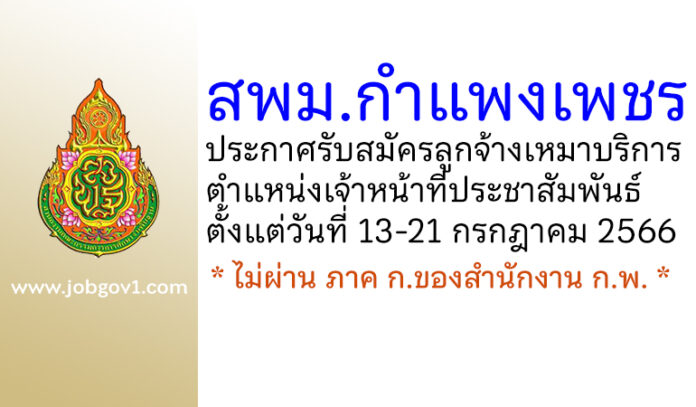 สพม.กำแพงเพชร รับสมัครลูกจ้างเหมาบริการ ตำแหน่งเจ้าหน้าที่ประชาสัมพันธ์ ตั้งแต่วันที่ 13-21 กรกฎาคม 2566