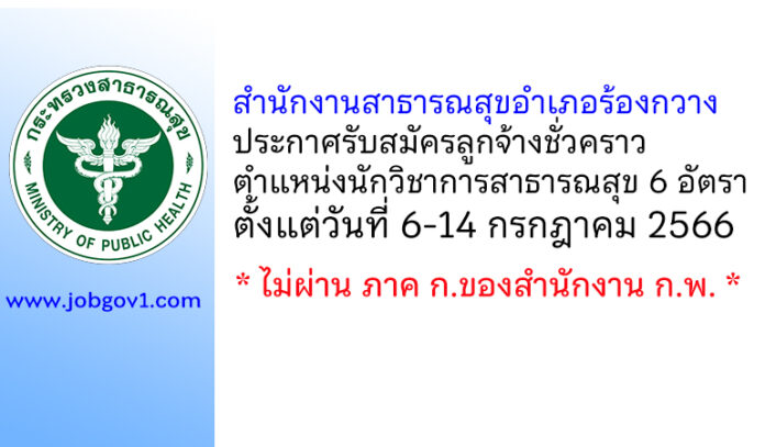 สำนักงานสาธารณสุขอำเภอร้องกวาง รับสมัครลูกจ้างชั่วคราว ตำแหน่งนักวิชาการสาธารณสุข 6 อัตรา ตั้งแต่วันที่ 6-14 กรกฎาคม 2566