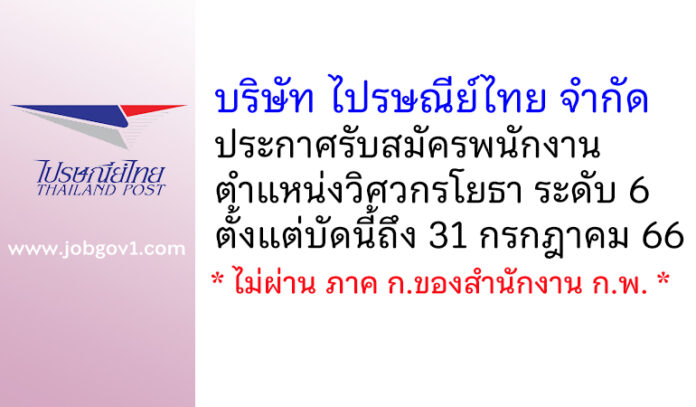 ประกาศบริษัท ไปรษณีย์ไทย จำกัด เรื่อง รับสมัครบุคคลเพื่อคัดเลือกเข้าดำรงตำแหน่งวิศวกรโยธา ระดับ 6