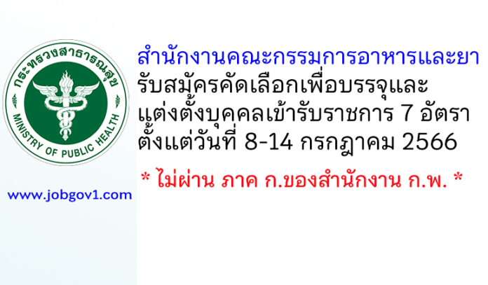 สำนักงานคณะกรรมการอาหารและยา รับสมัครคัดเลือกเพื่อบรรจุและแต่งตั้งบุคคลเข้ารับราชการ 7 อัตรา ตั้งแต่วันที่ 8-14 กรกฎาคม 2566