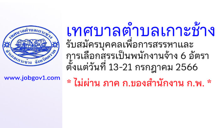 เทศบาลตำบลเกาะช้าง รับสมัครบุคคลเพื่อการสรรหาและการเลือกสรรเป็นพนักงานจ้าง 6 อัตรา ตั้งแต่วันที่ 13-21 กรกฎาคม 2566