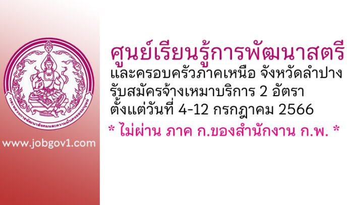 ศูนย์เรียนรู้การพัฒนาสตรีและครอบครัวภาคเหนือ จังหวัดลำปาง รับสมัครจ้างเหมาบริการ 2 อัตรา ตั้งแต่วันที่ 4-12 กรกฎาคม 2566