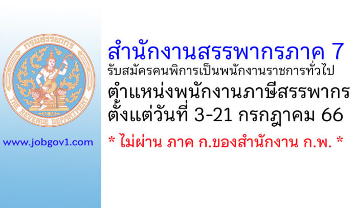 สำนักงานสรรพากรภาค 7 รับสมัครคนพิการเป็นพนักงานราชการทั่วไป ตำแหน่งพนักงานภาษีสรรพากร ตั้งแต่วันที่ 3-21 กรกฎาคม 2566