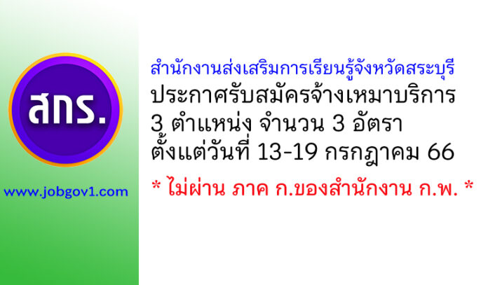 สำนักงานส่งเสริมการเรียนรู้จังหวัดสระบุรี รับสมัครจ้างเหมาบริการ 3 อัตรา ตั้งแต่วันที่ 13-19 กรกฎาคม 2566