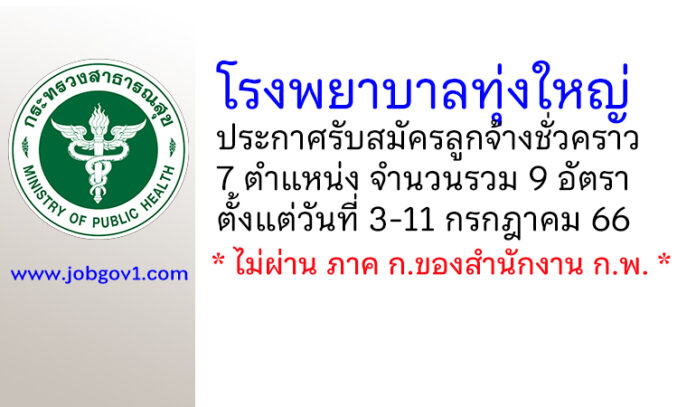 โรงพยาบาลทุ่งใหญ่ รับสมัครลูกจ้างชั่วคราว 9 อัตรา ตั้งแต่วันที่ 3-11 กรกฎาคม 2566