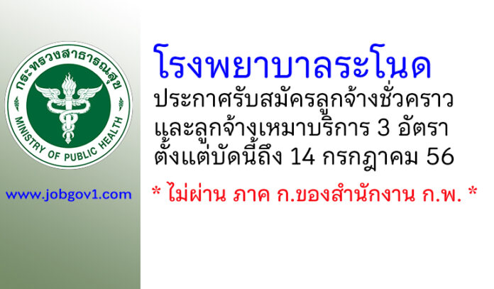 โรงพยาบาลระโนด รับสมัครลูกจ้างชั่วคราว และลูกจ้างเหมาบริการ 3 อัตรา ตั้งแต่บัดนี้ถึง 14 กรกฎาคม 2556