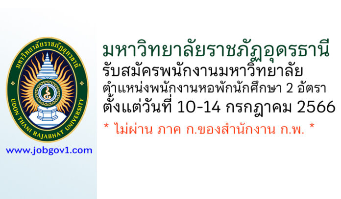 มหาวิทยาลัยราชภัฏอุดรธานี รับสมัครพนักงานมหาวิทยาลัย ตำแหน่งพนักงานหอพักนักศึกษา 2 อัตรา ตั้งแต่วันที่ 10-14 กรกฎาคม 2566