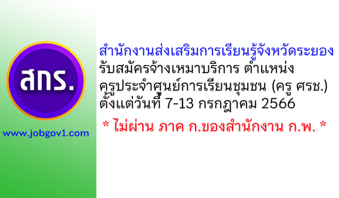 สำนักงานส่งเสริมการเรียนรู้จังหวัดระยอง รับสมัครจ้างเหมาบริการ ตำแหน่งครูประจำศูนย์การเรียนชุมชน (ครู ศรช.) ตั้งแต่วันที่ 7-13 กรกฎาคม 2566