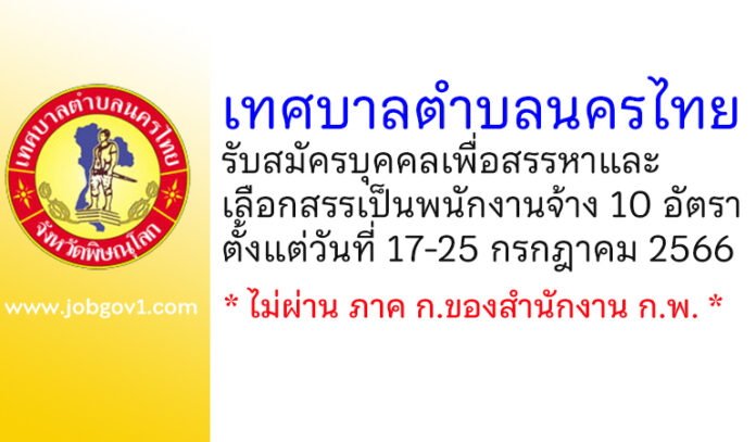 เทศบาลตำบลนครไทย รับสมัครบุคคลเพื่อสรรหาและเลือกสรรเป็นพนักงานจ้าง 10 อัตรา ตั้งแต่วันที่ 17-25 กรกฎาคม 2566