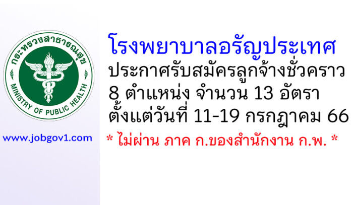 โรงพยาบาลอรัญประเทศ รับสมัครลูกจ้างชั่วคราว 8 ตำแหน่ง 13 อัตรา ตั้งแต่วันที่ 11-19 กรกฎาคม 2566