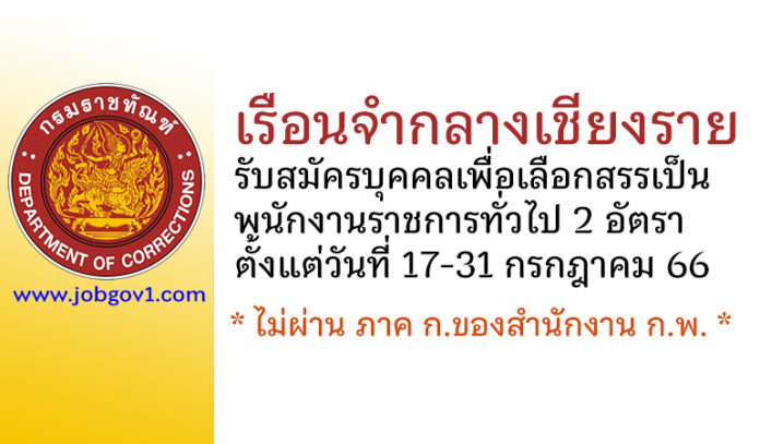 เรือนจำกลางเชียงราย รับสมัครบุคคลเพื่อเลือกสรรเป็นพนักงานราชการทั่วไป 2 อัตรา ตั้งแต่วันที่ 17-31 กรกฎาคม 2566