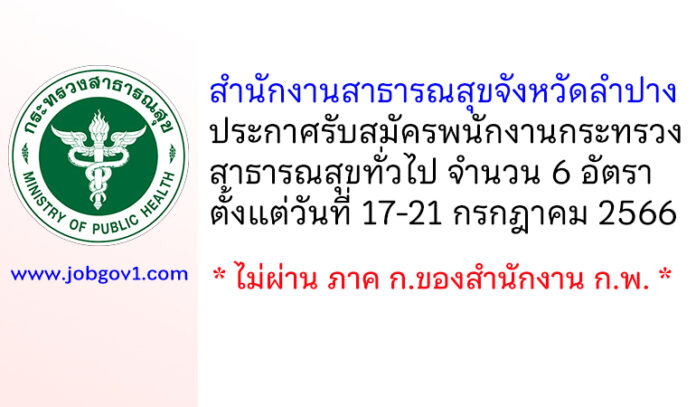 สำนักงานสาธารณสุขจังหวัดลำปาง รับสมัครพนักงานกระทรวงสาธารณสุขทั่วไป 6 อัตรา ตั้งแต่วันที่ 17-21 กรกฎาคม 2566