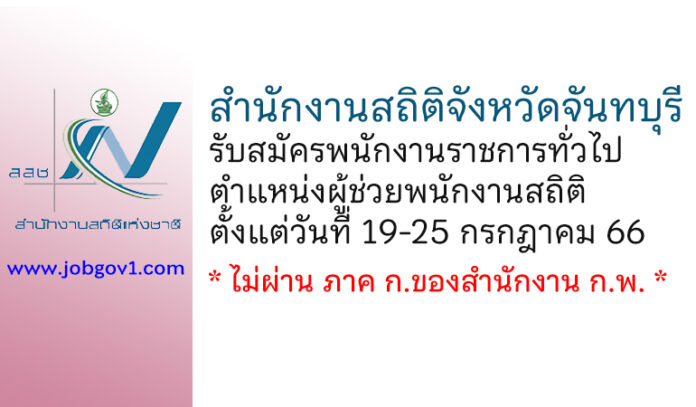 สำนักงานสถิติจังหวัดจันทบุรี รับสมัครพนักงานราชการทั่วไป ตำแหน่งผู้ช่วยพนักงานสถิติ ตั้งแต่วันที่ 19-25 กรกฎาคม 2566
