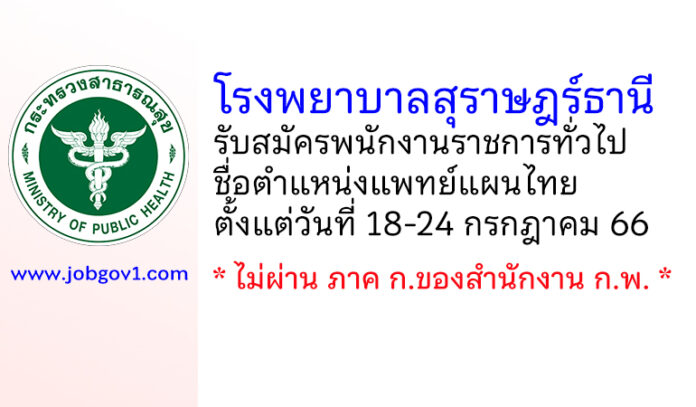 โรงพยาบาลสุราษฎร์ธานี รับสมัครพนักงานราชการทั่วไป ตำแหน่งแพทย์แผนไทย ตั้งแต่วันที่ 18-24 กรกฎาคม 2566