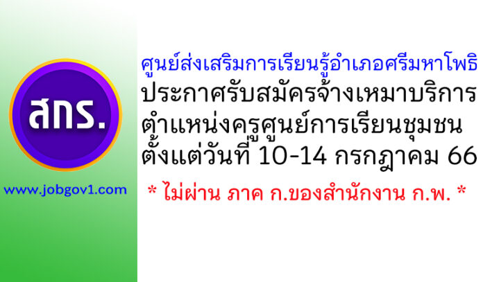 ศูนย์ส่งเสริมการเรียนรู้อำเภอศรีมหาโพธิ รับสมัครจ้างเหมาบริการ ตำแหน่งครูศูนย์การเรียนชุมชน ตั้งแต่วันที่ 10-14 กรกฎาคม 2566