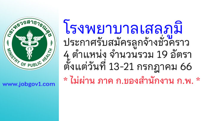 โรงพยาบาลเสลภูมิ รับสมัครลูกจ้างชั่วคราว 4 ตำแหน่ง 19 อัตรา ตั้งแต่วันที่ 13-21 กรกฎาคม 2566