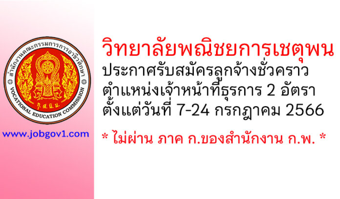 วิทยาลัยพณิชยการเชตุพน รับสมัครลูกจ้างชั่วคราว ตำแหน่งเจ้าหน้าที่ธุรการ 2 อัตรา ตั้งแต่วันที่ 7-24 กรกฎาคม 2566