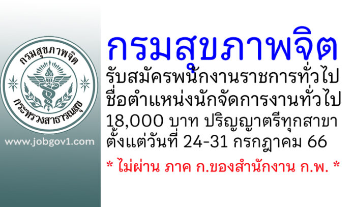 กรมสุขภาพจิต รับสมัครพนักงานราชการทั่วไป ตำแหน่งนักจัดการงานทั่วไป ตั้งแต่วันที่ 24-31 กรกฎาคม 2566