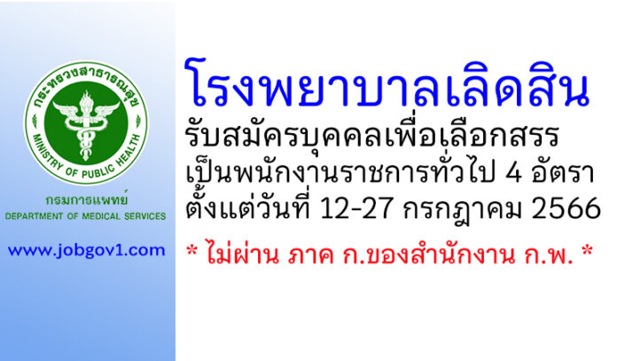 โรงพยาบาลเลิดสิน รับสมัครบุคคลเพื่อเลือกสรรเป็นพนักงานราชการทั่วไป 4 อัตรา ตั้งแต่วันที่ 12-27 กรกฎาคม 2566