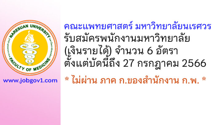 คณะแพทยศาสตร์ มหาวิทยาลัยนเรศวร รับสมัครพนักงานมหาวิทยาลัย(เงินรายได้) 6 อัตรา ตั้งแต่บัดนี้ถึง 27 กรกฎาคม 2566